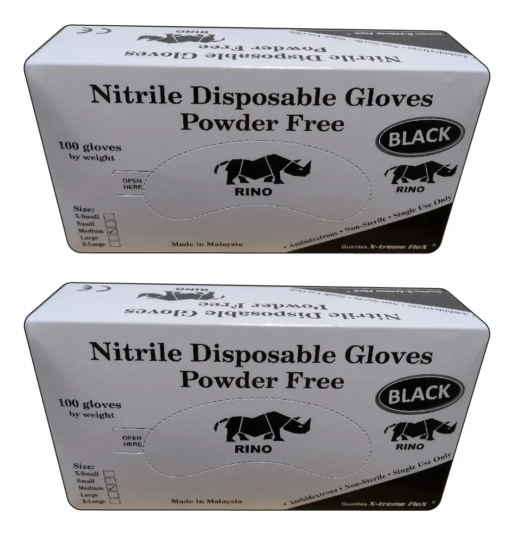 Pack 2 cajas guantes nitrilo negro marca Rino Xtreme-Flex