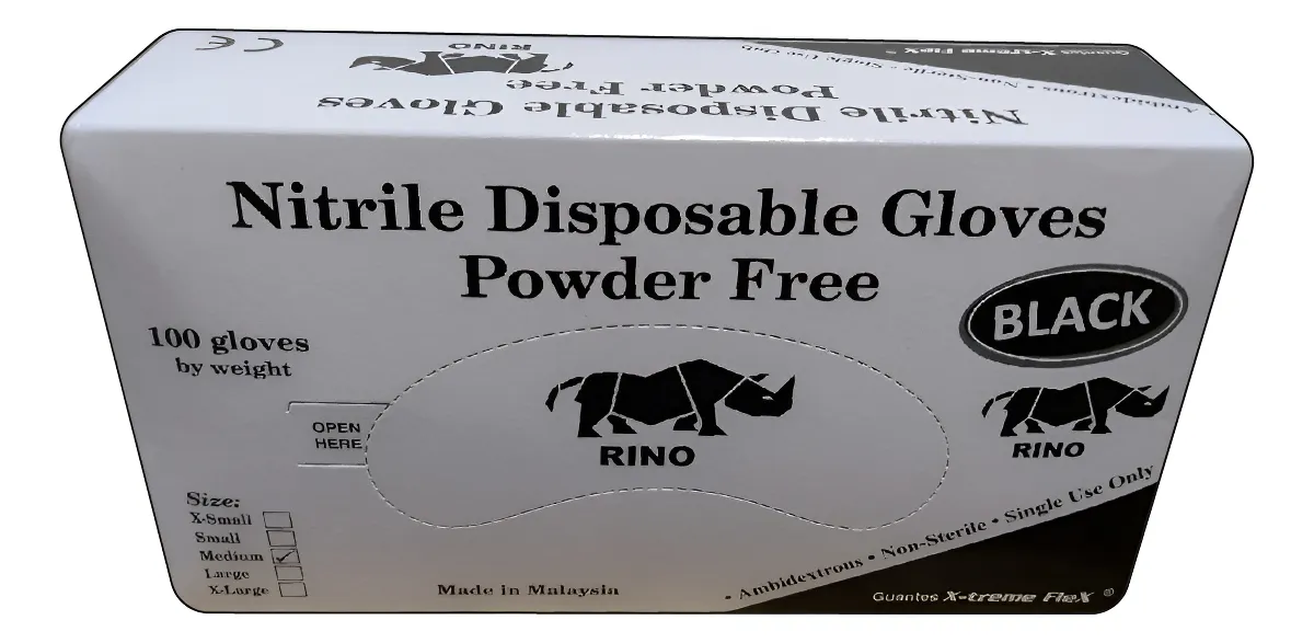Guantes de Nitrilo Negro – Marca Rino Xtreme-Flex | Caja x100 Unidades